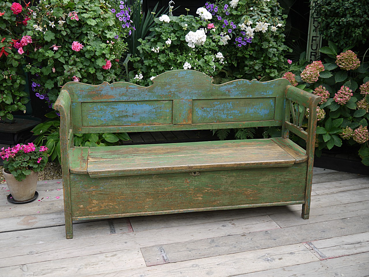 Fantastic! Antique Pine Original Painted Hungarian Box Bench / Settle / Pew