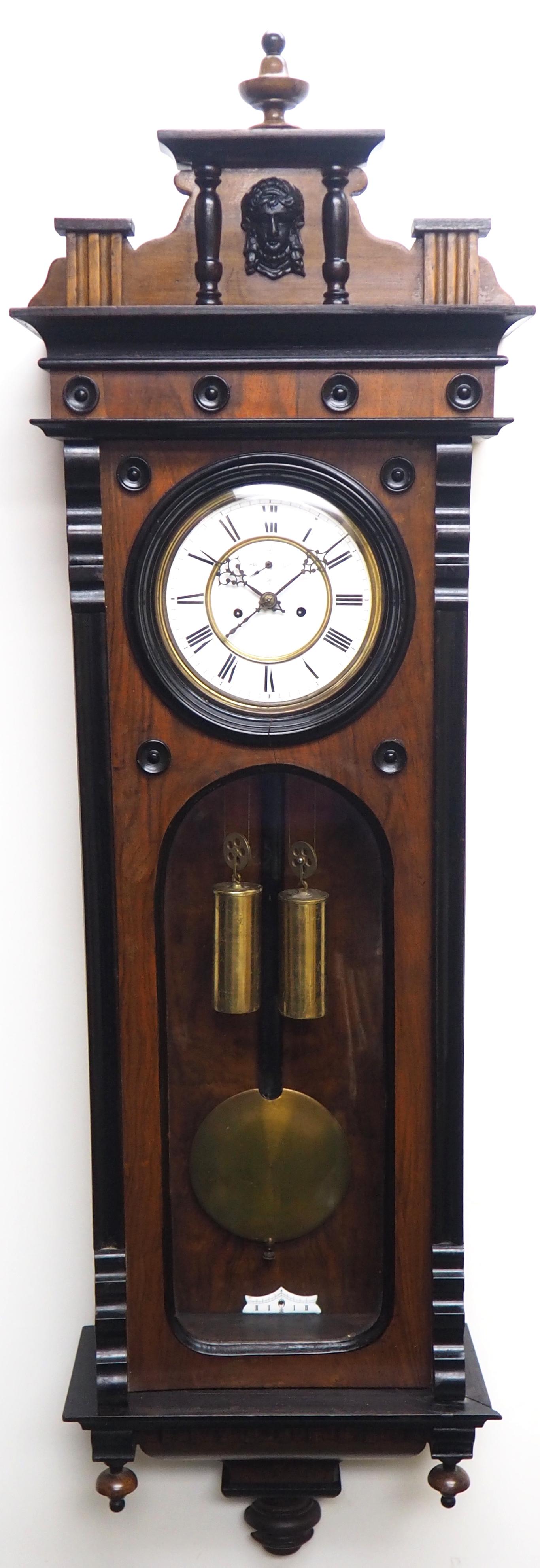 Fantastic Antique Walnut & Ebonised 8-day Twin Weight Striking Vienna Regulator Wall Clock
