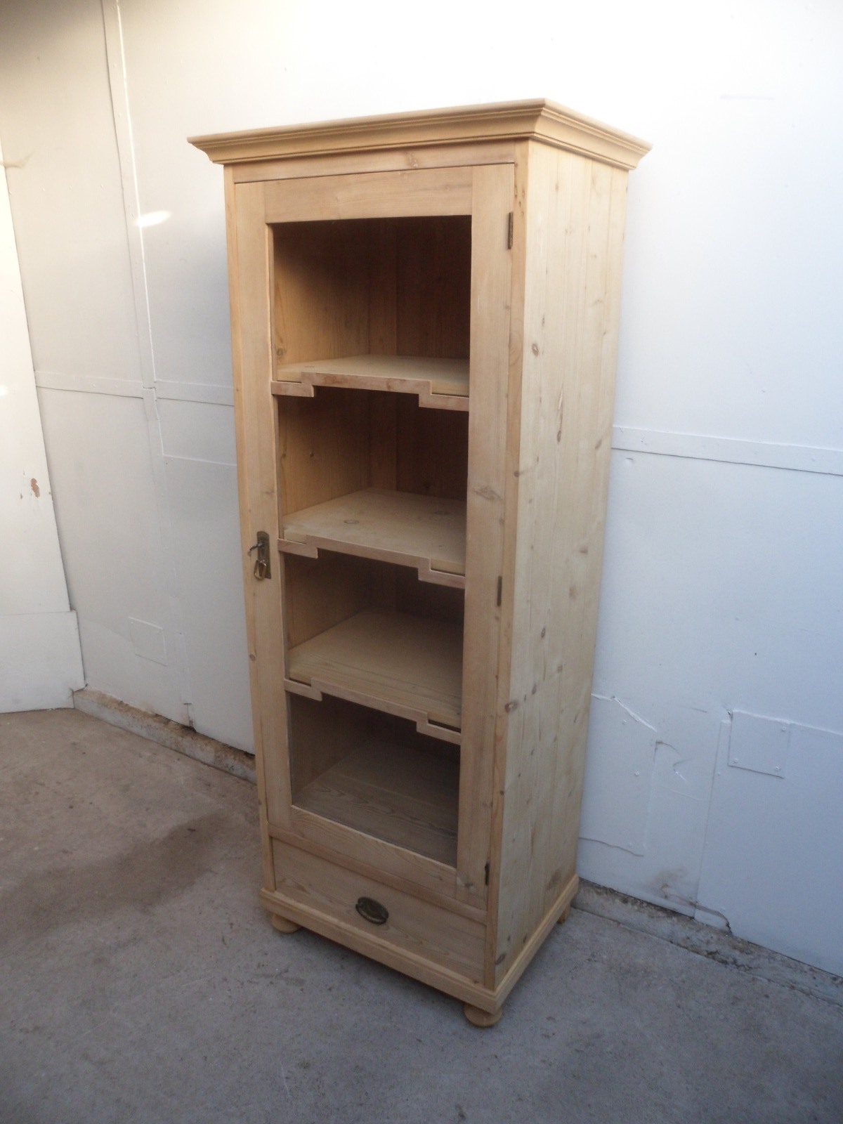 Fantastic Art Deco Old Pine 1 Door Display Cabinet to wax / paint