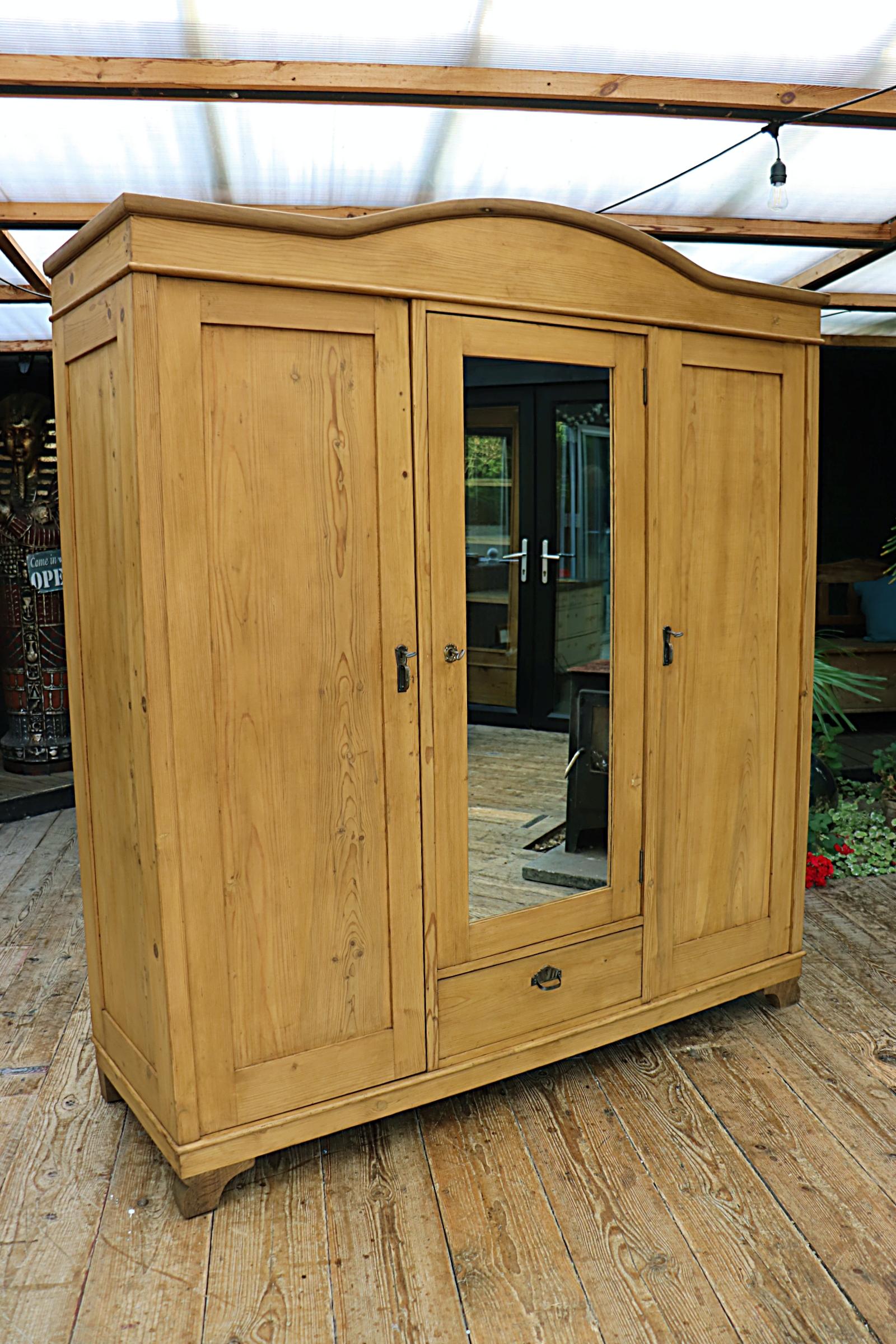 Fantastic Big Antique Pine Triple Knock Down Combination Wardrobe