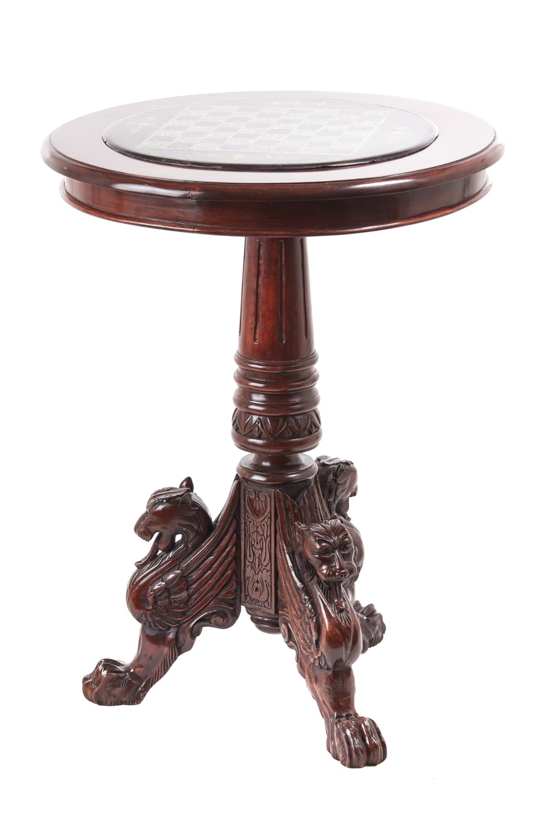 Fantastic Carved Mahogany Table with a Painted Marble Chess Top