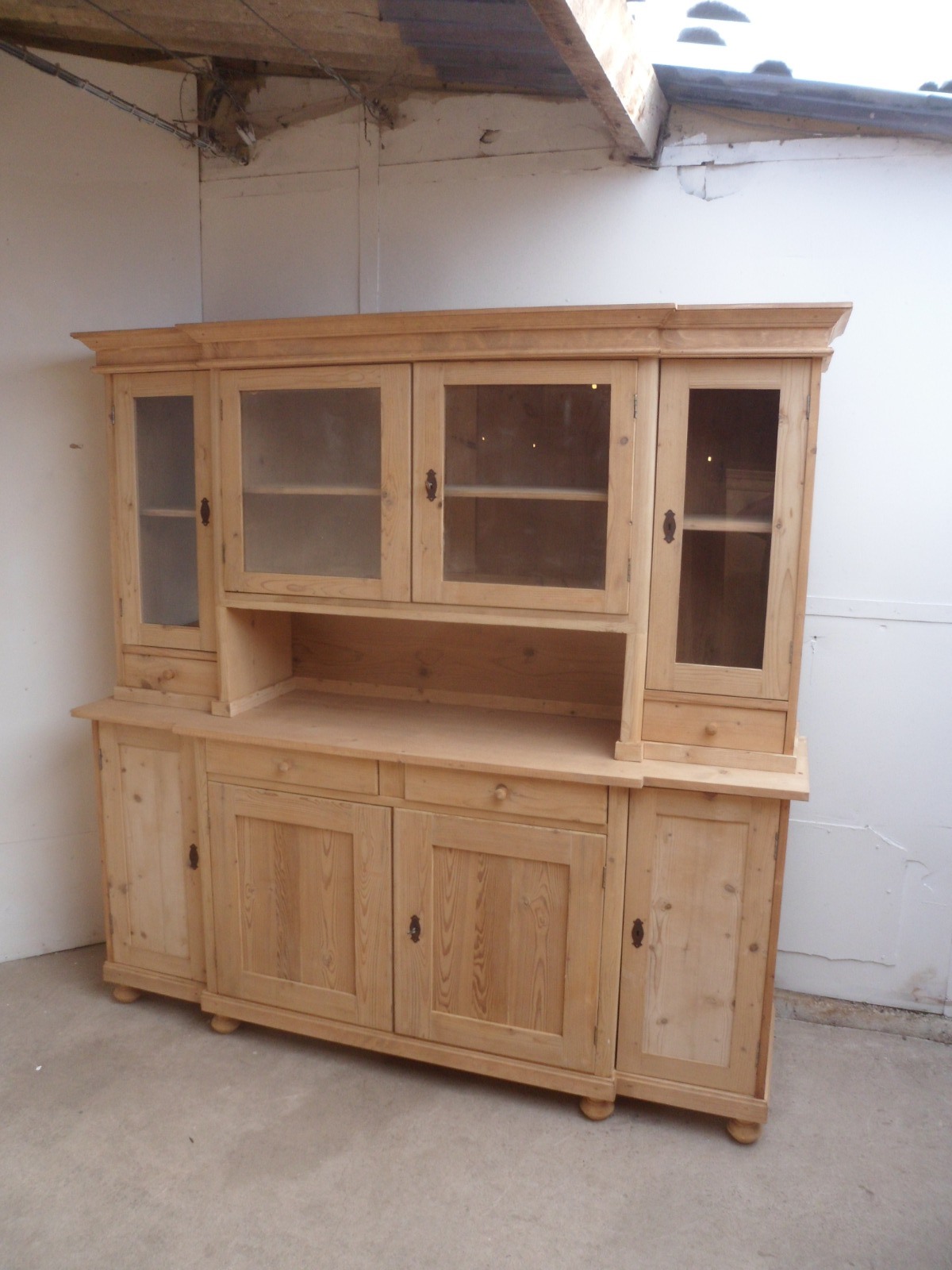 Fantastic Large 4 Door Old Pine Kitchen Dresser to Wax / Paint c.1920