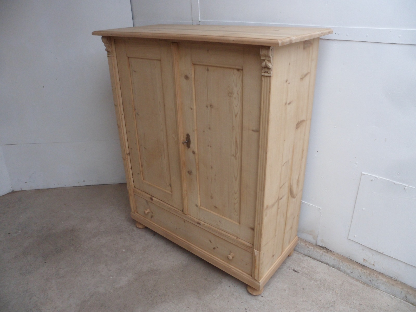 Fantastic Large Old Pine 2 Door 1 Drawer Storage Cupboard to wax / paint