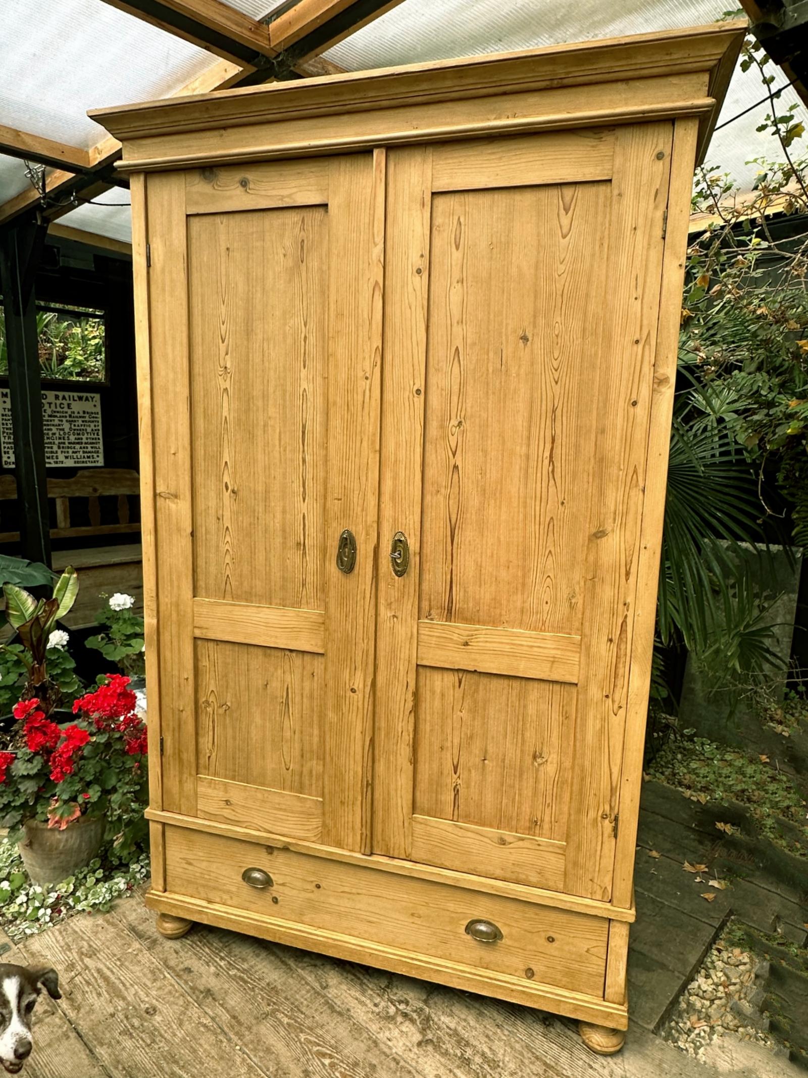 Fantastic Large Old Pine Double 'Knock Down' Wardrobe