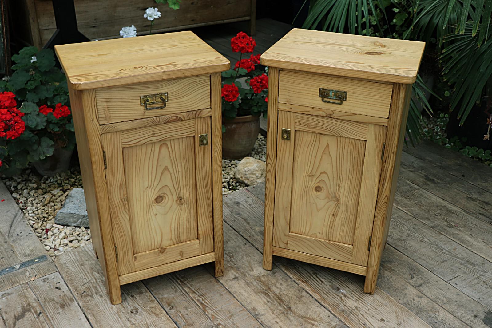 Fantastic & Large Pair of Old Stripped Pine Bedside Cabinets - We Deliver!