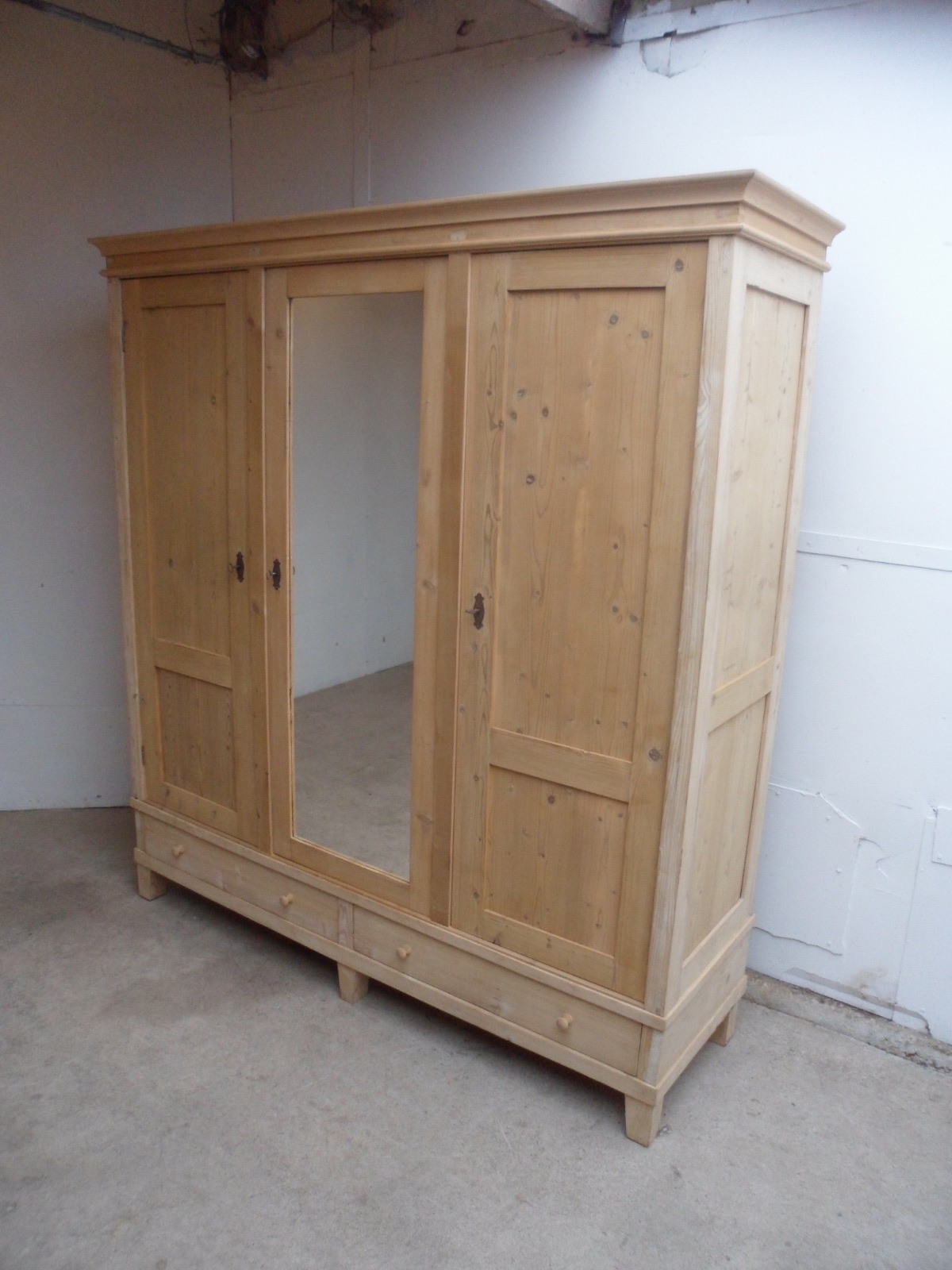 Fantastic Large Triple Old Pine 3 Door Knockdown Wardrobe to paint / wax