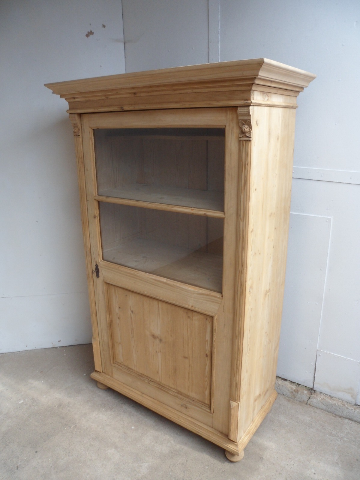 Fantastic Late Victorian Antique Pine Glazed Display Cabinet to wax / paint