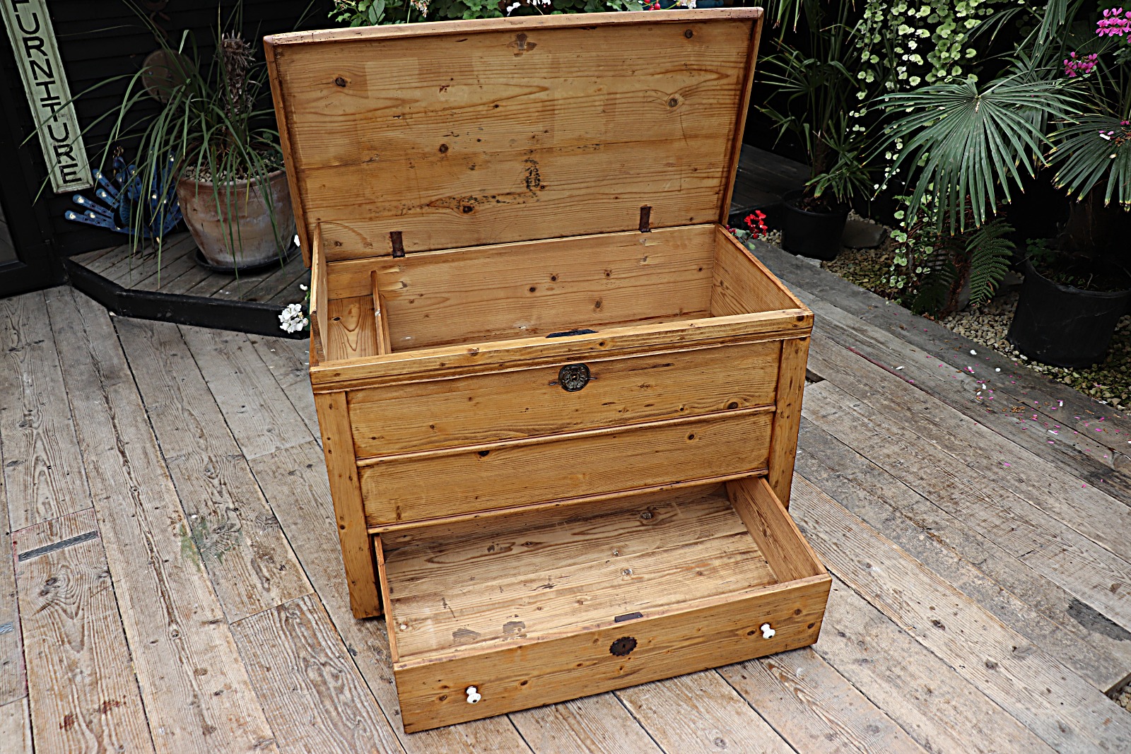 Fantastic Old Antique Stripped Pine Blanket Box / Mule Chest / Trunk - We Deliver!