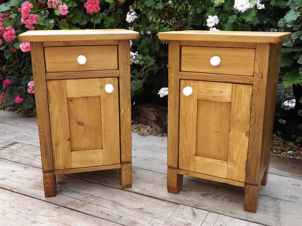 Fantastic Pair of Old Antique Pine Bedside Cabinets / Cupboards / Tables. We Deliver!