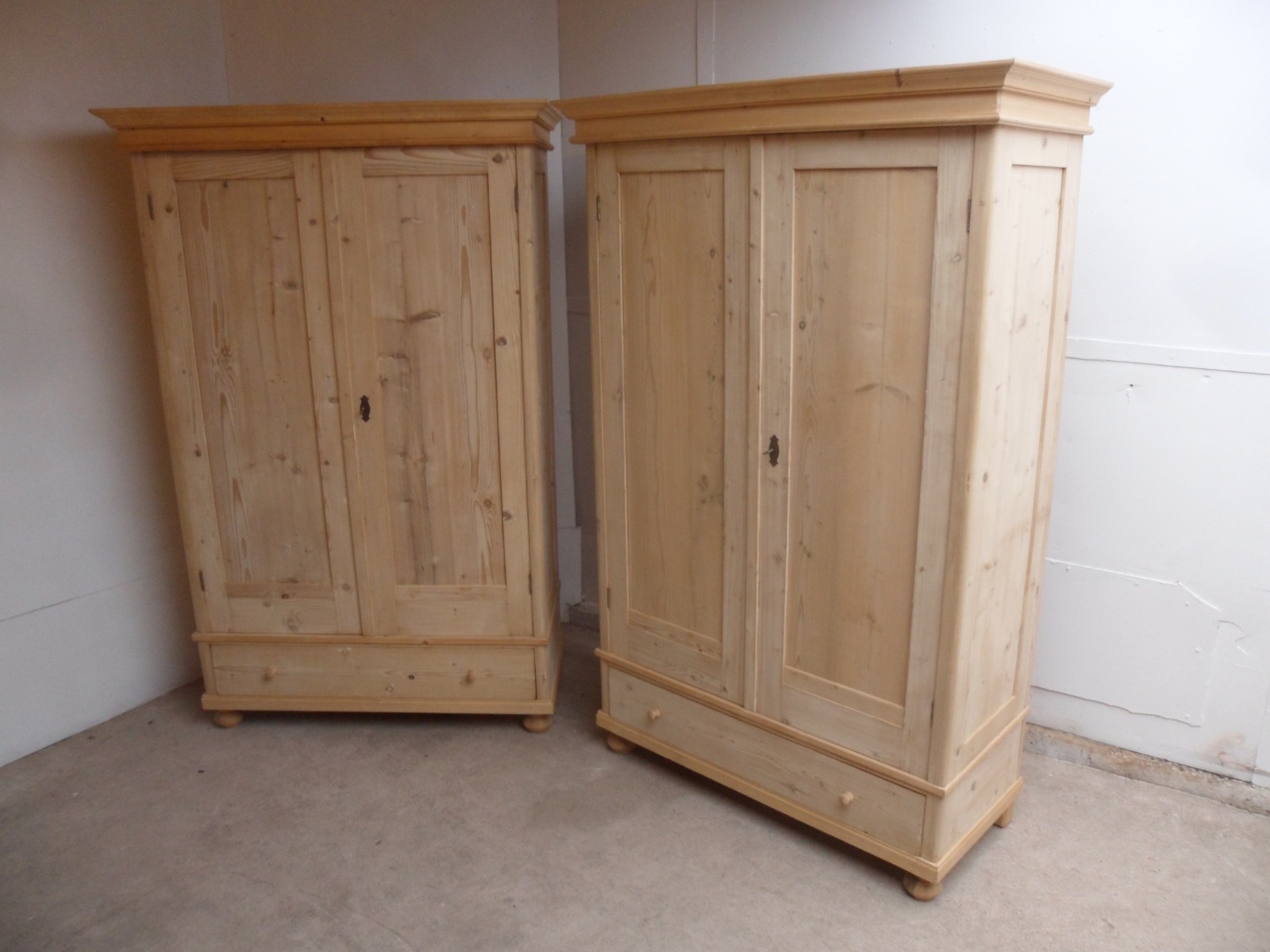 Fantastic Pair of Pine Panelled Knockdown Wardrobes to wax / paint c.1920