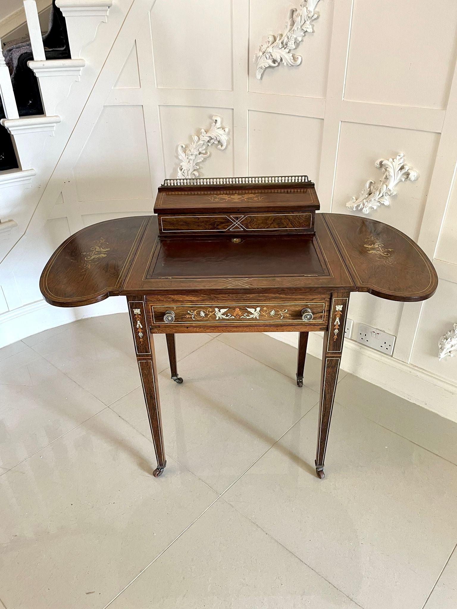 Fantastic Quality Antique Edwardian Rosewood Inlaid Free Standing Writing Desk