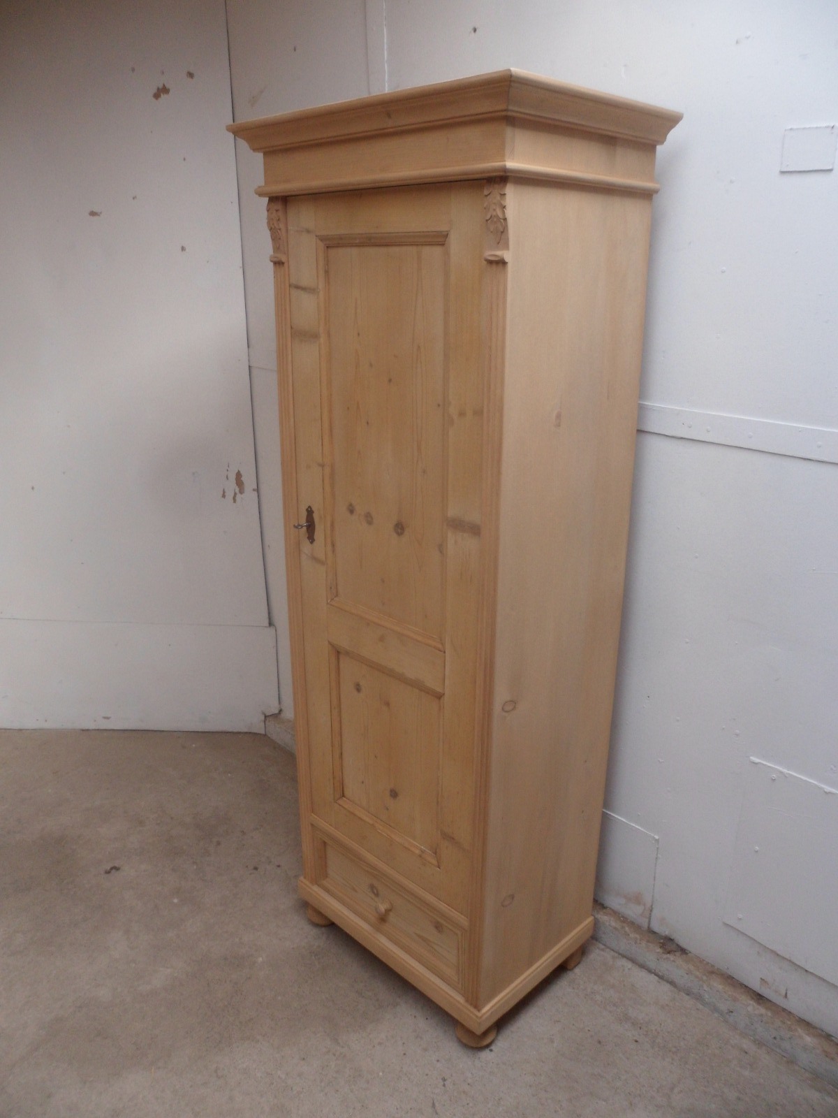 Fantastic Tall Thin Old Pine 1 Door 1 Drawer Cupboard to wax / paint