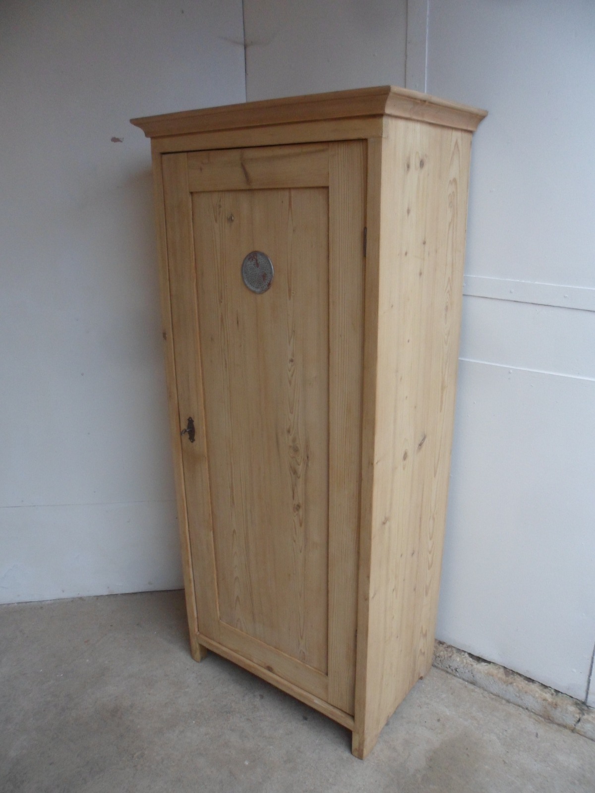 Fantastic Tall Thin Pine 1 Door Metal Vent Food Cupboard to wax / paint