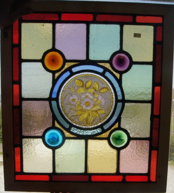 Fantastic Victorian Hand Painted Leaded Glass Window (2 available) c.1900