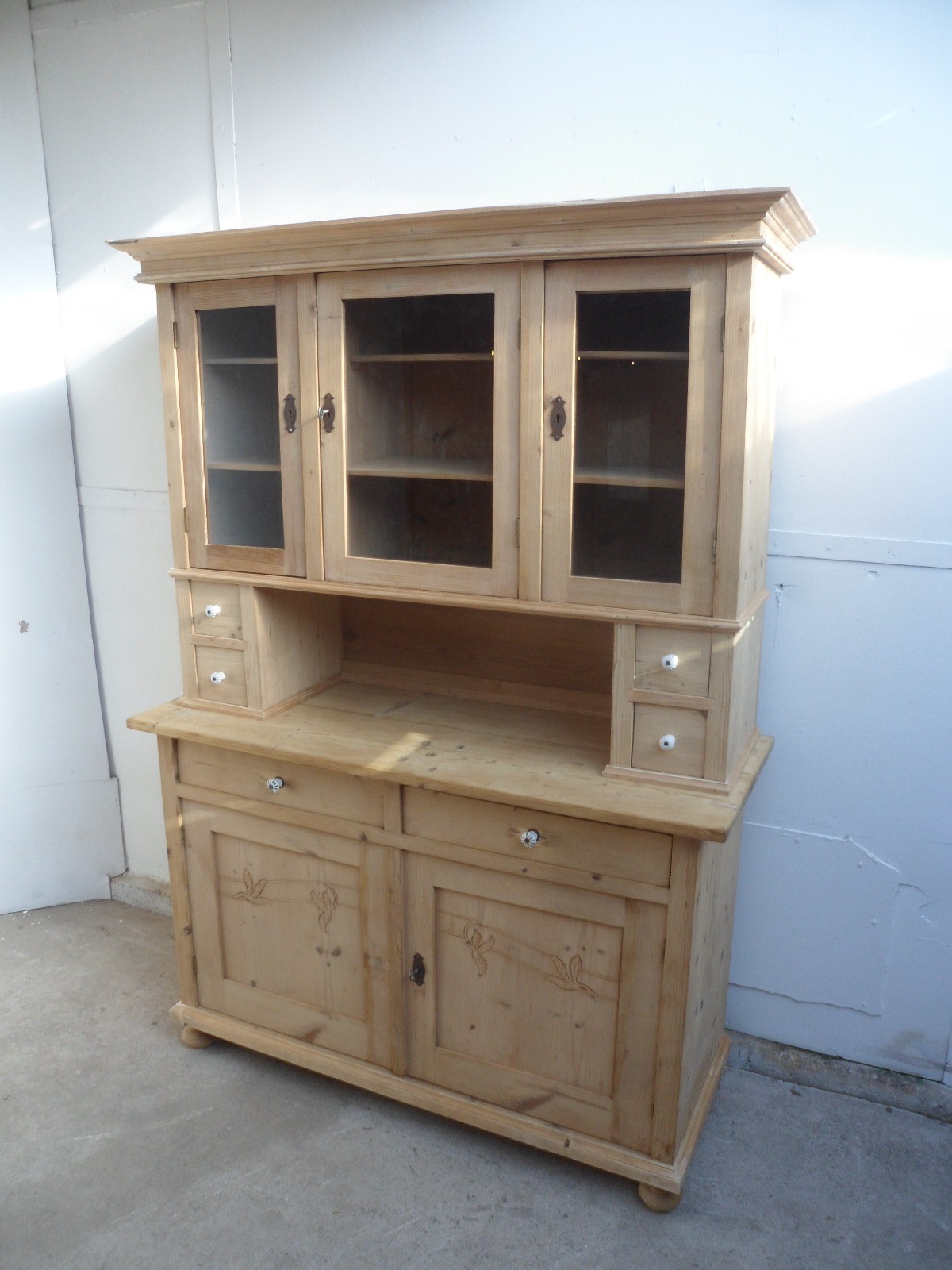 Fantastically Carved Old Pine 3 Door Kitchen Dresser to wax / paint