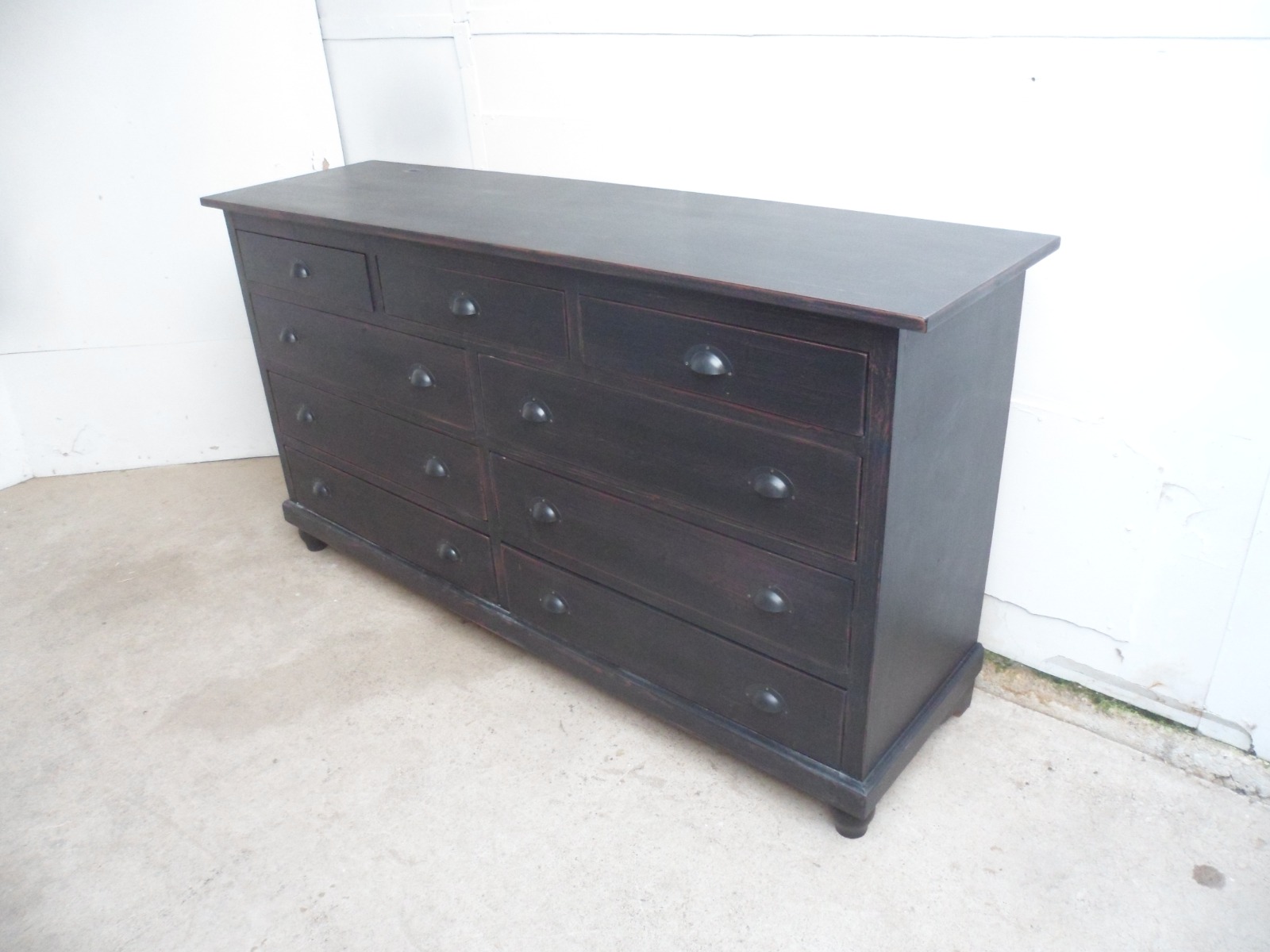 Fantastically Painted Black Reclaimed Pine 9 Drawer Chest of Drawers