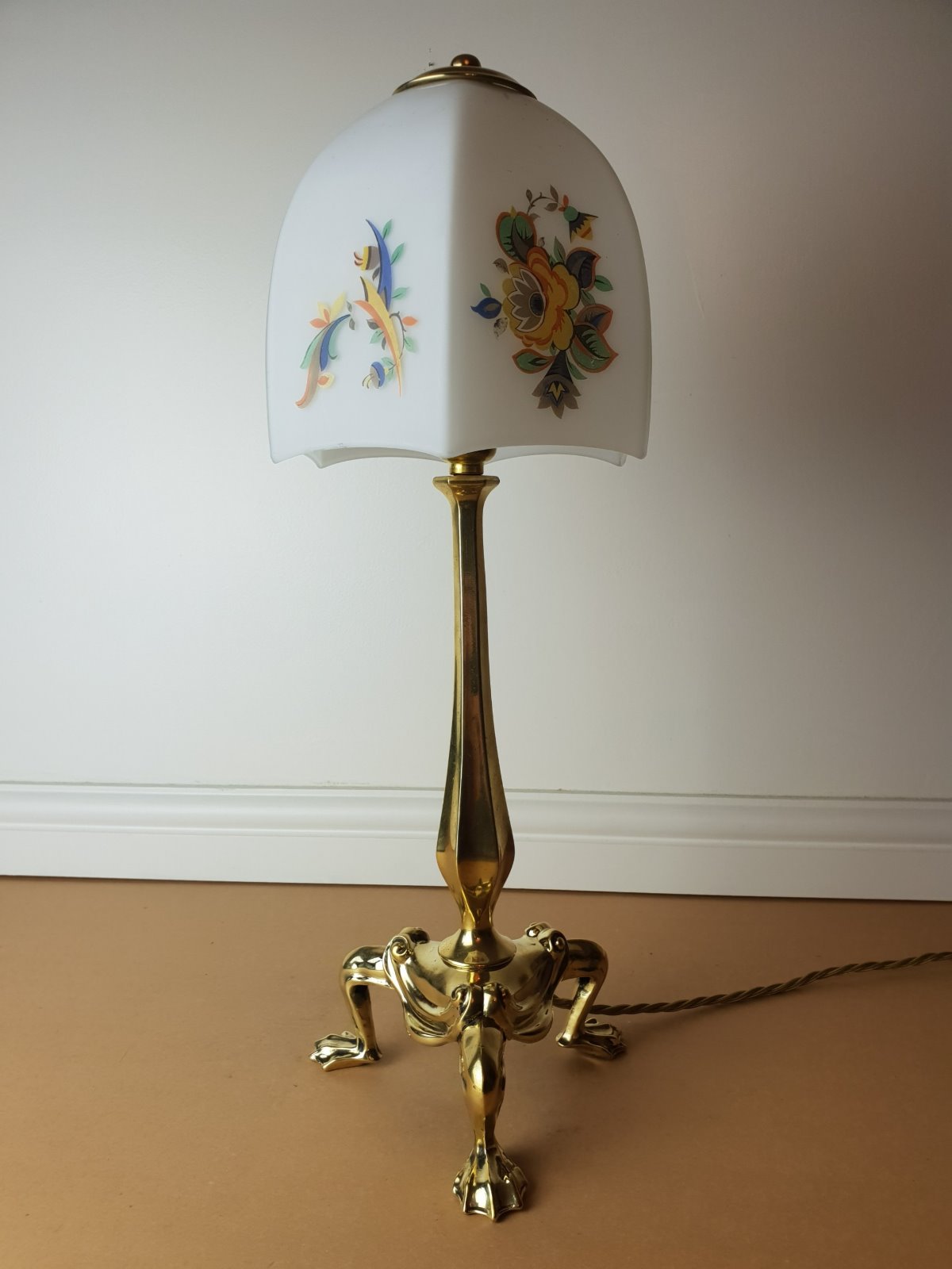 Faraday and Sons Brass Pullman Table Lamp with Floral Ceramic Shade, Rewired and Pat Tested