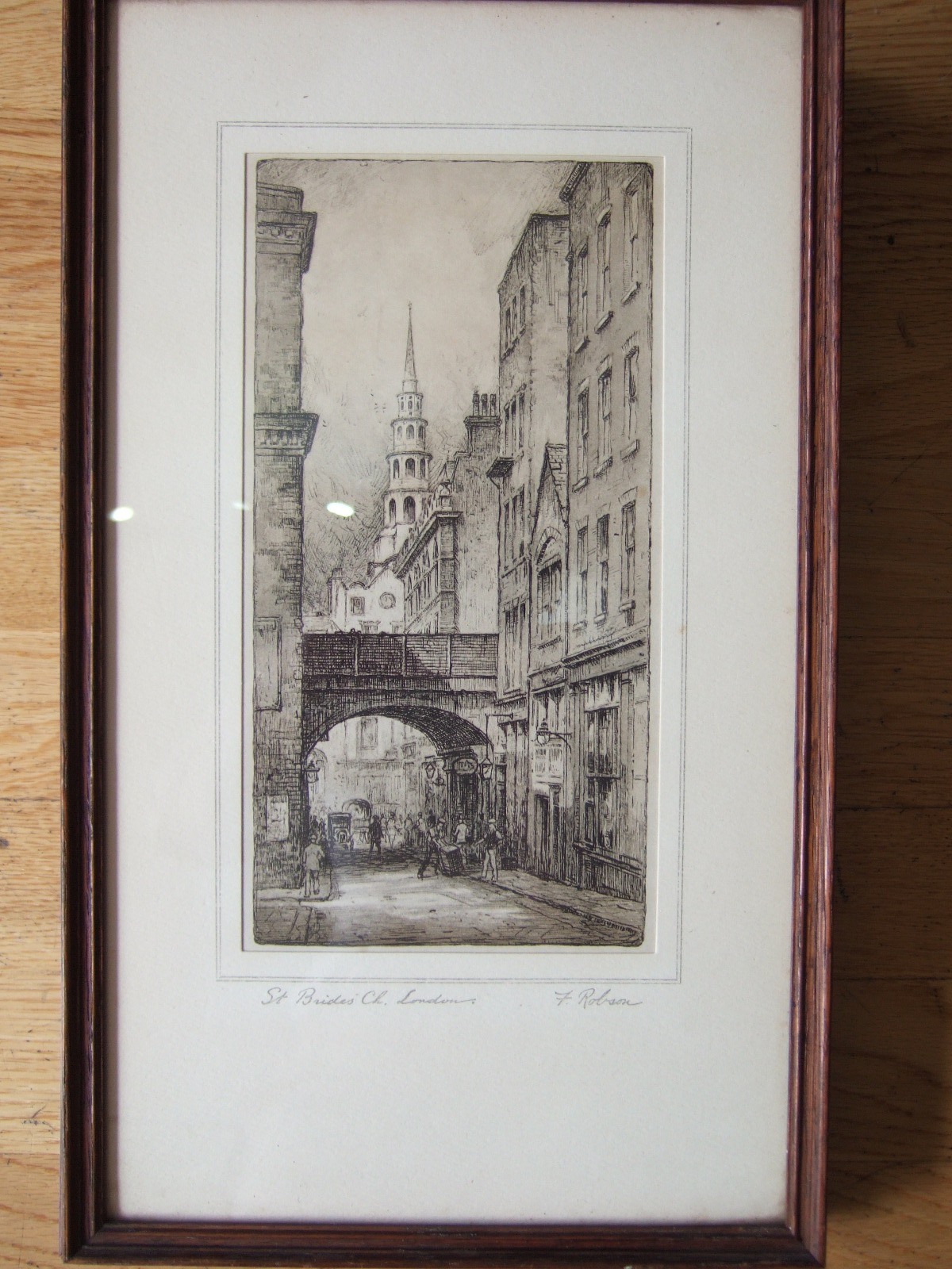 Featherstone Robson: Early 20th Century Etching of St Brides Church, off Fleet St, London (1 of 1)