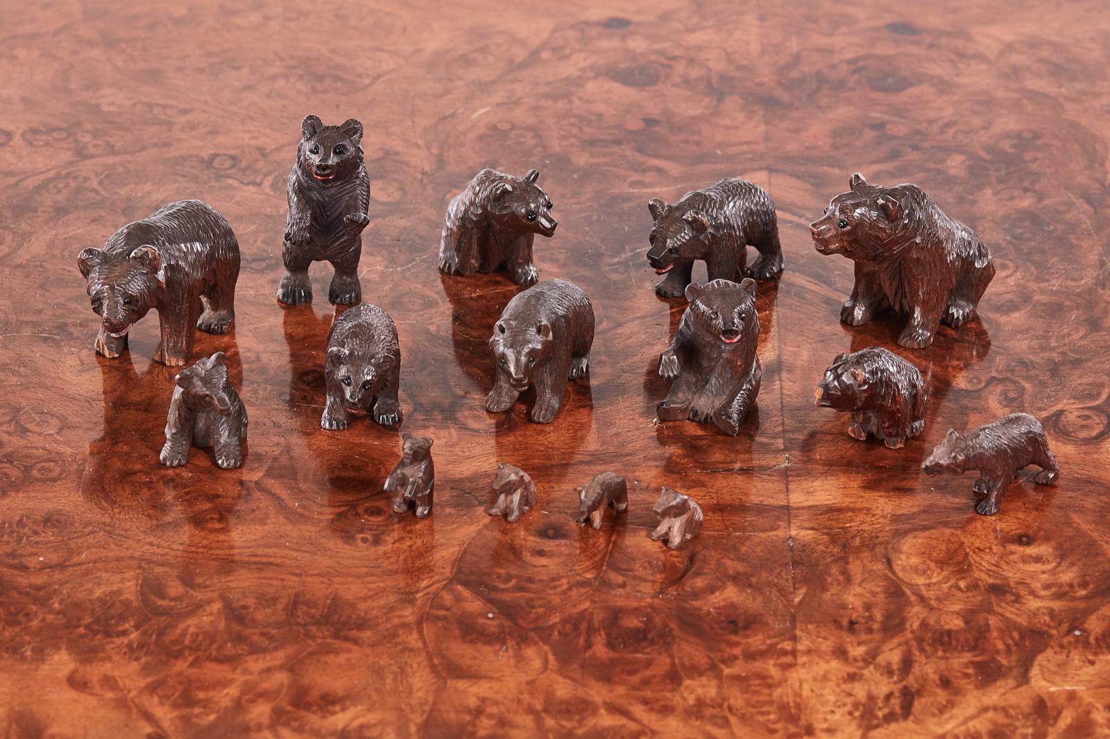 Fifteen Antique Miniature Carved Black Forest Bears