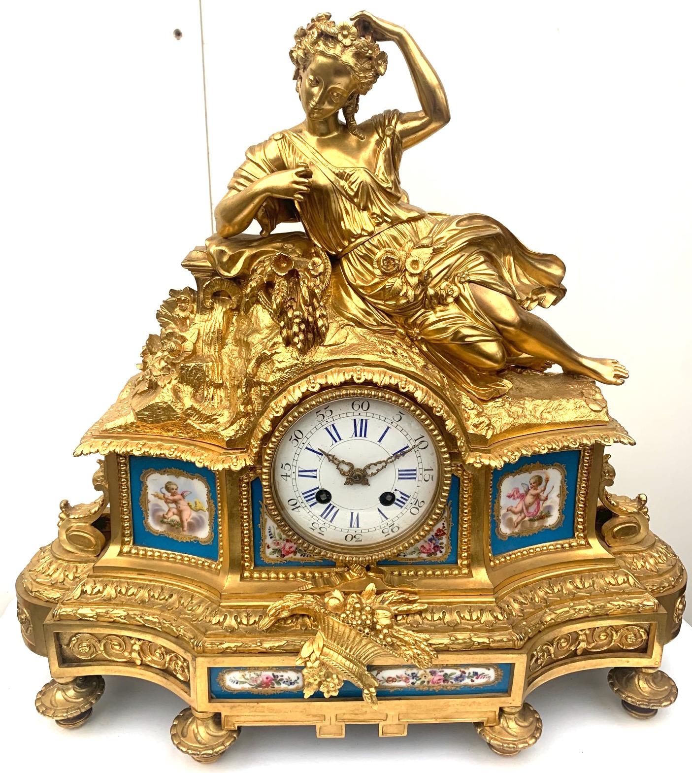 Figural Ormolu French Antique 8-day Striking Blue Sevres Mantle Clock c.1860 (1 of 16)