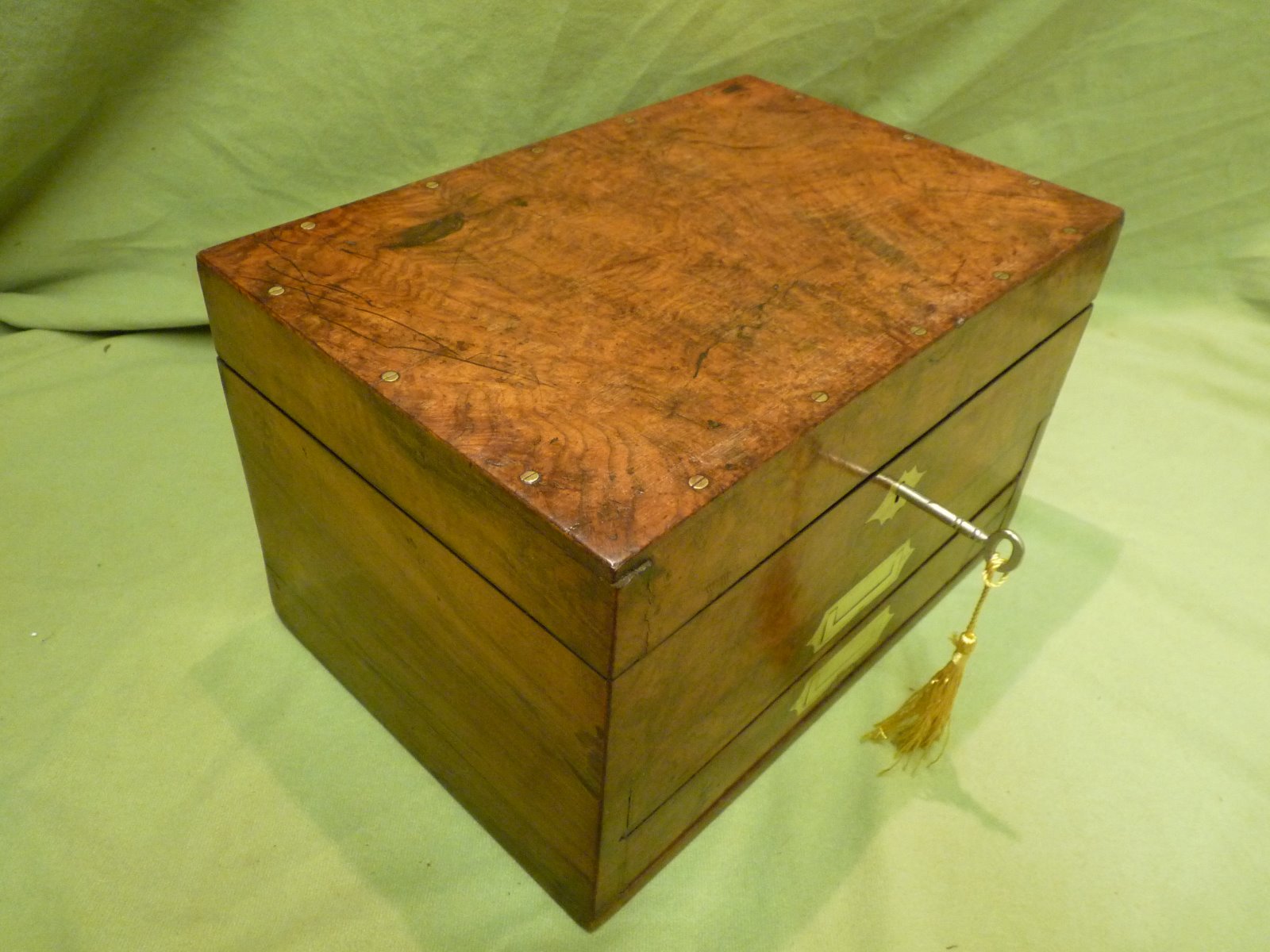 Figured Walnut 2 Drawer Unisex Adjustable Jewellery Box c.1870