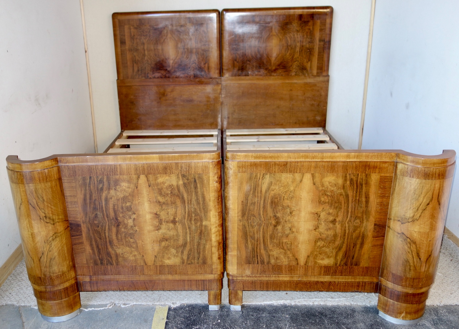 Figured Walnut Art Deco Double Bed / Two Single Beds c.1930