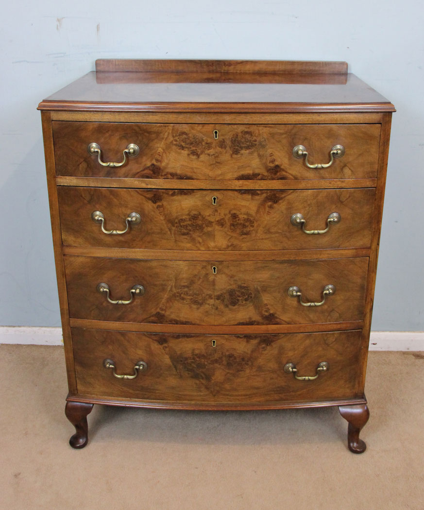 Figured Walnut Bow Front Chest of Drawers C.1920 (1 of 1)