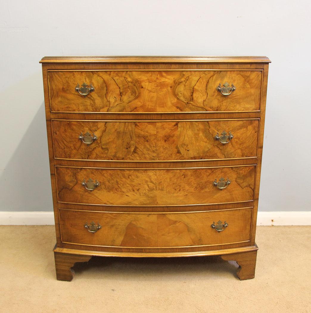 Figured Walnut Bow Fronted Chest of Drawers (1 of 11)