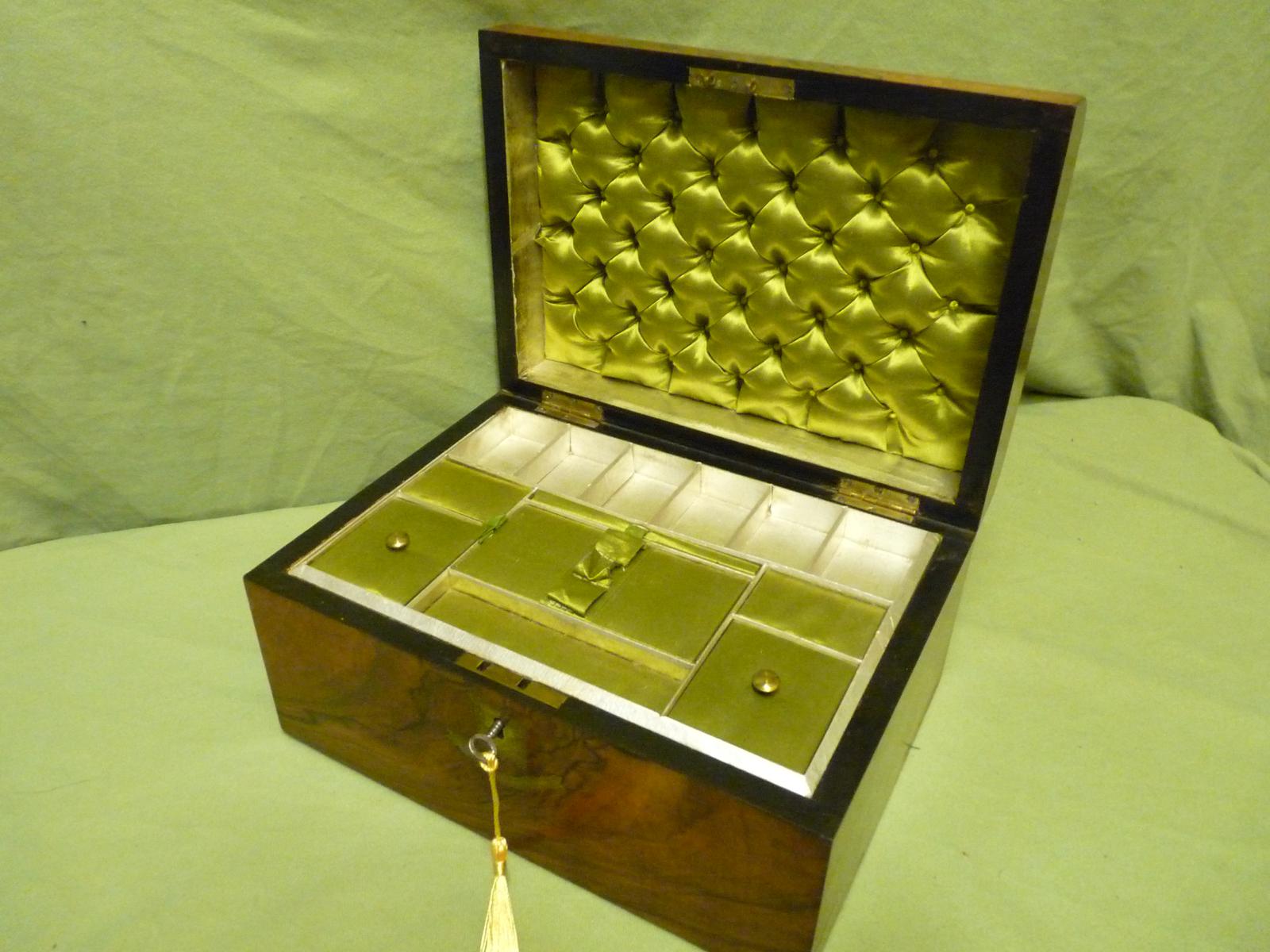 Figured Walnut Jewellery – Work Box. 100% Original.