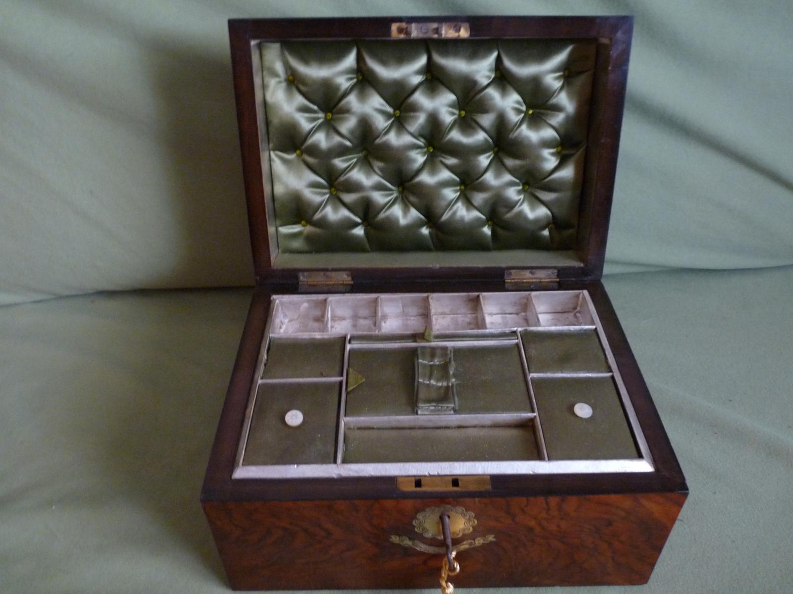 Figured Walnut Jewellery – Work Box + Tray c.1870