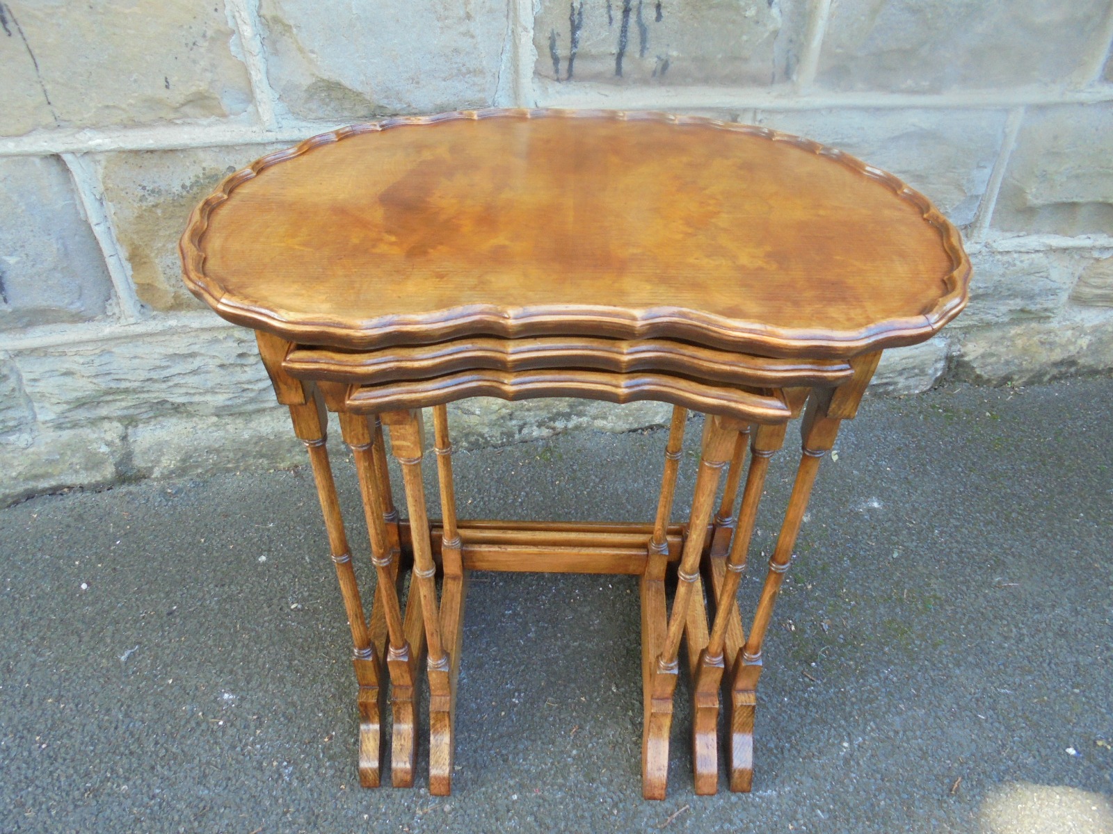 Figured Walnut Nest 3 Kidney Shaped Tables c.1920