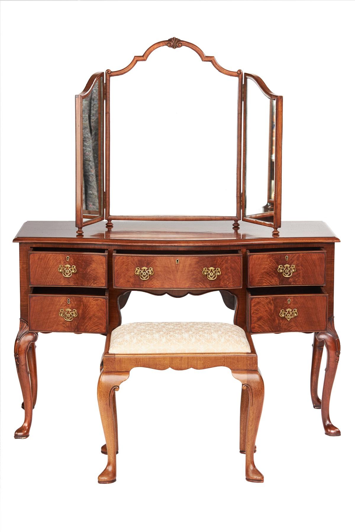 Figured Walnut Queen Anne Dressing Table with Stool c.1930