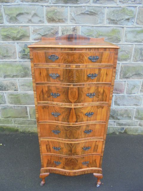 Figured Walnut Serpentine Tallboy Chest of Draws c.1920