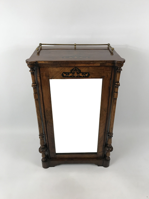 Figured Walnut Veneered Music Cabinet with Brass Gallery