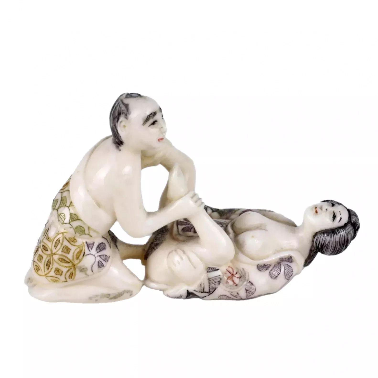 Figurine Okimono Erotic couple consists of 2 Figures in an Erotic Pose, made of white ivory.