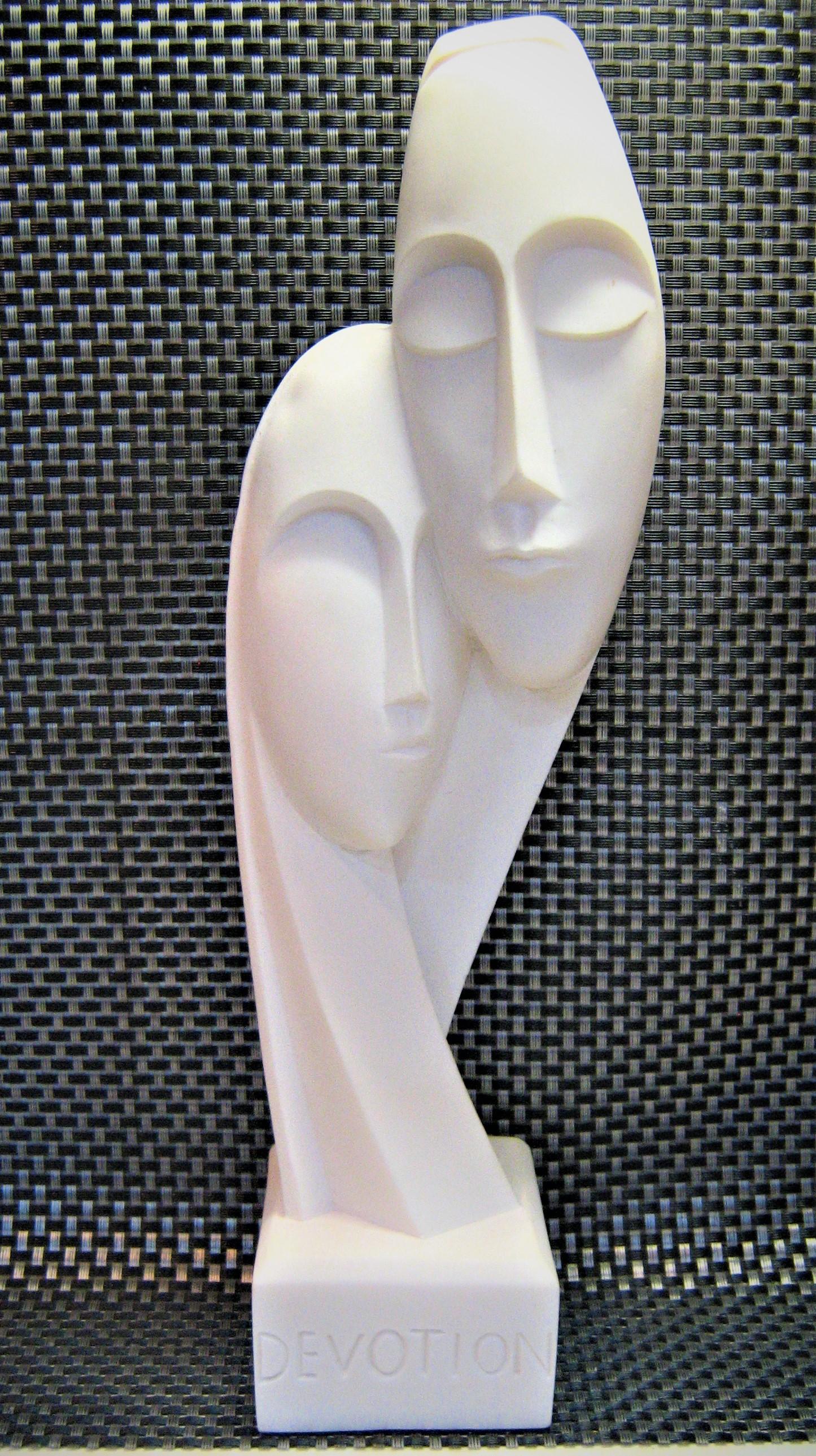 Figurine Sculpture: Hand-crafted White Alabaster Figurine Entitled "Devotion"