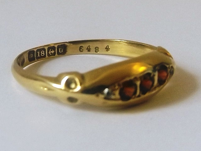 Fine 18ct Garnet & Diamond Ring UK Size N Dated 1919