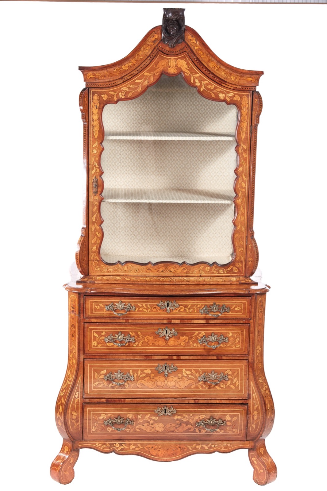 Fine 18th Century Antique Walnut Dutch Marquetry Cabinet
