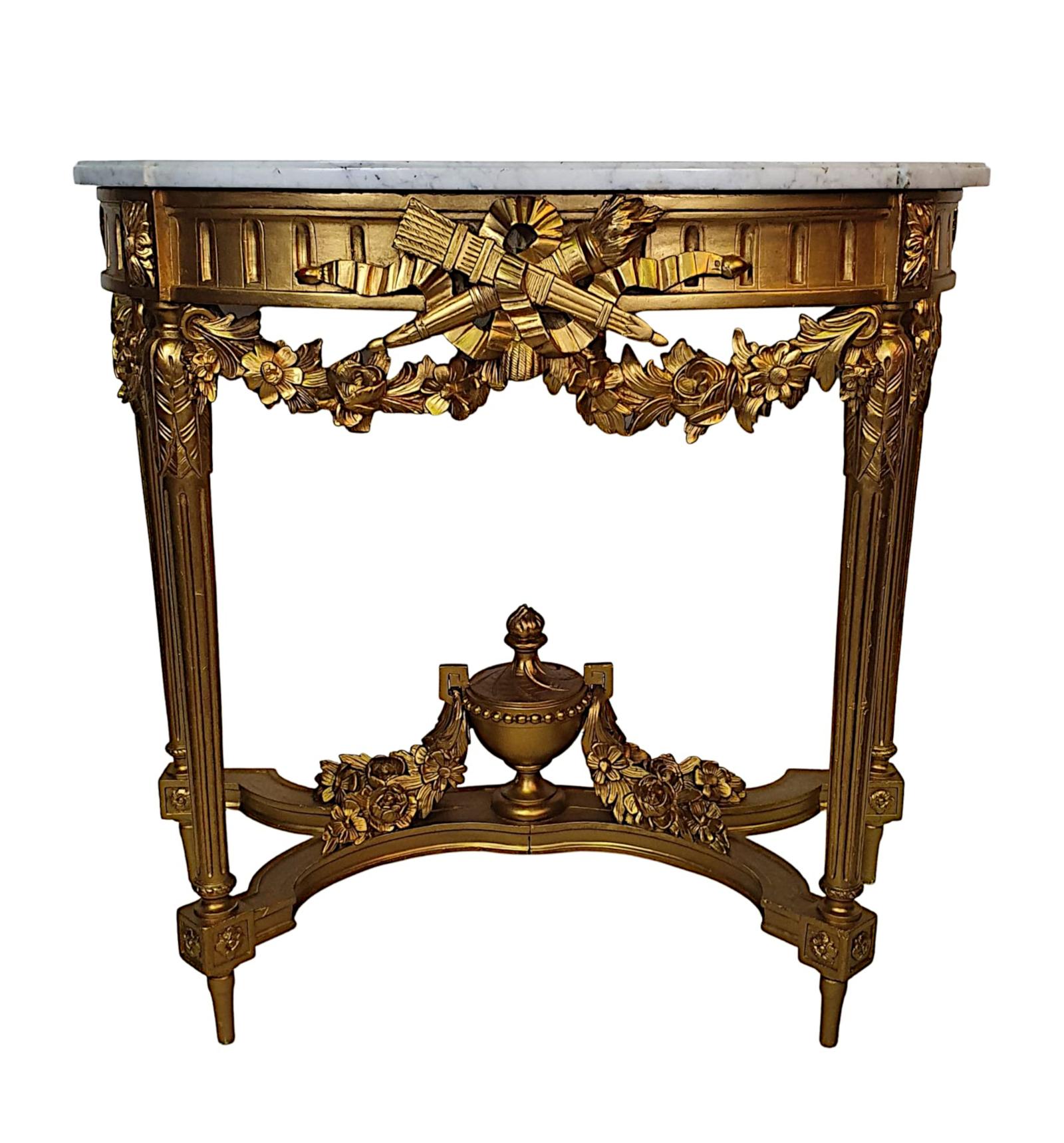 Fine 19th Century Carrara White Marble Top Giltwood Console Table