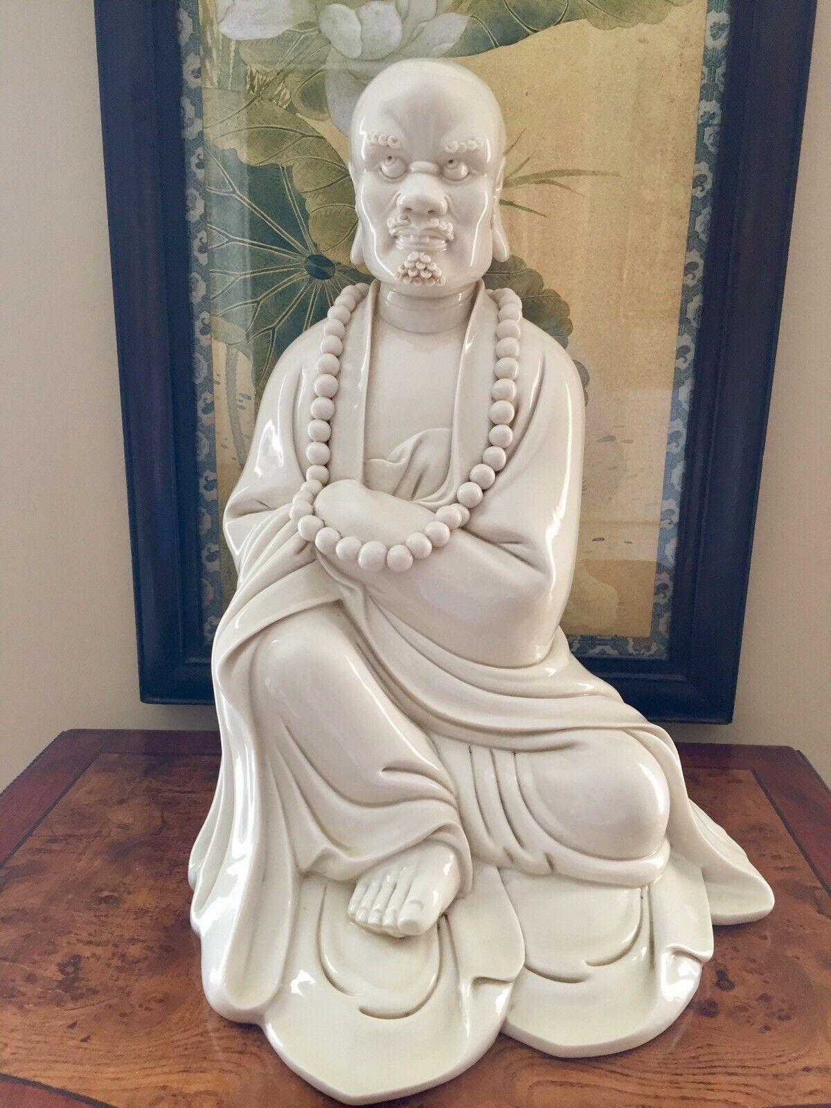 Fine 19th Century Chinese Porcelain Blanc de Chine Figure of Bodhidharma Damo, Buddha Dehua Stamp