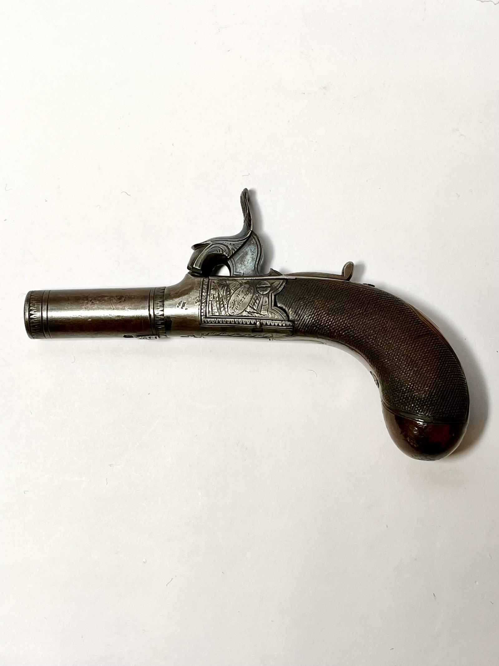 Fine 19th Century English 60 Bore Percussion Boxlock Pocket Pistol by H W Mortimer, London