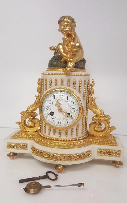 Fine 19th Century French 8 Day Marble & Ormolu Mantel Clock