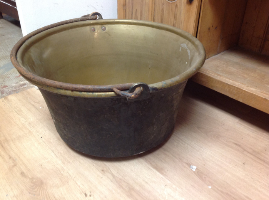 Fine 19th Century French Brass Cauldron with Iron Swing Handle , Grest Log Basket, Xmas Tree Holder, Flower Arranging Fire Pit etc