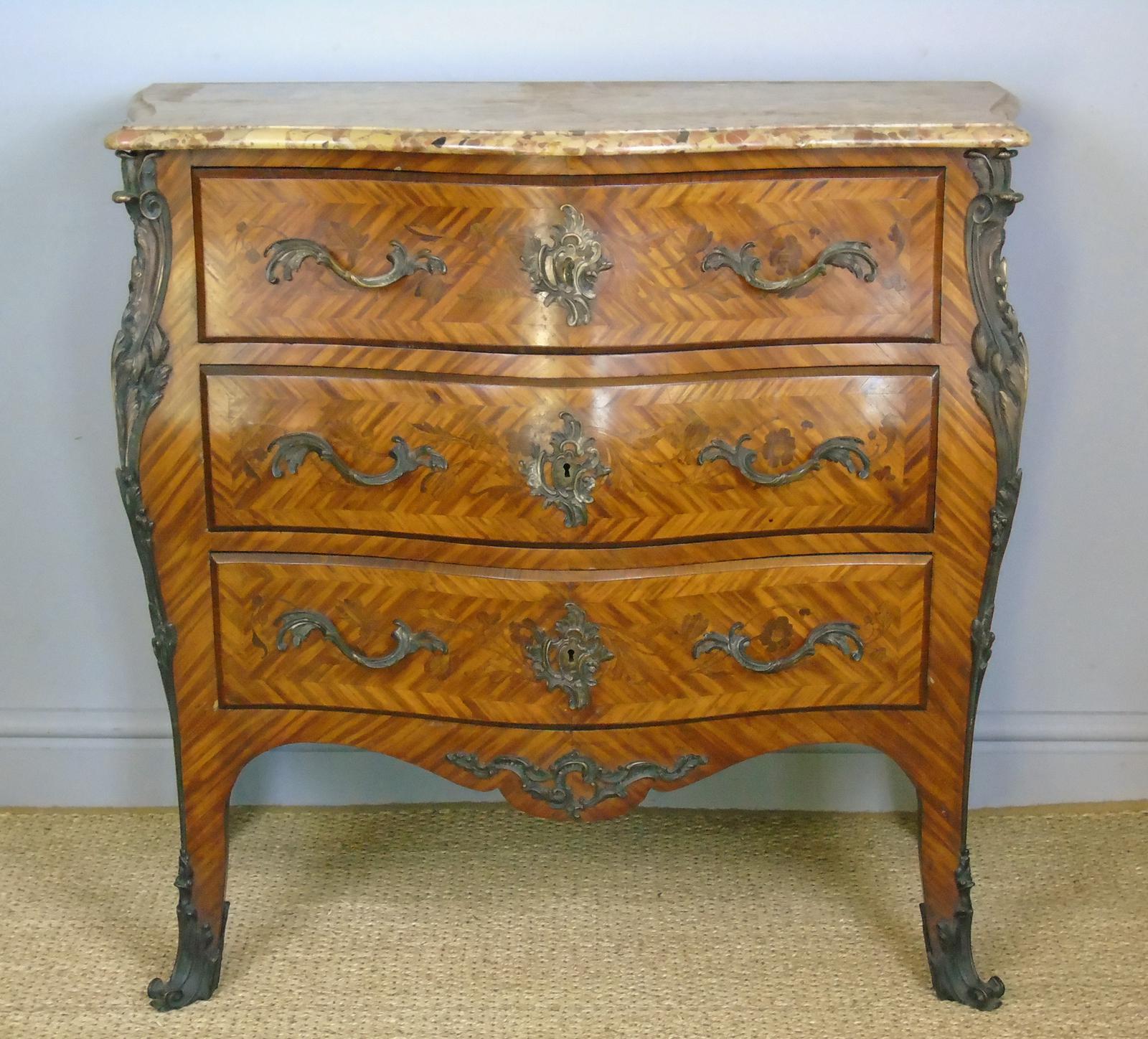 Fine 19th Century French Parquetry Marble Top Commode Chest