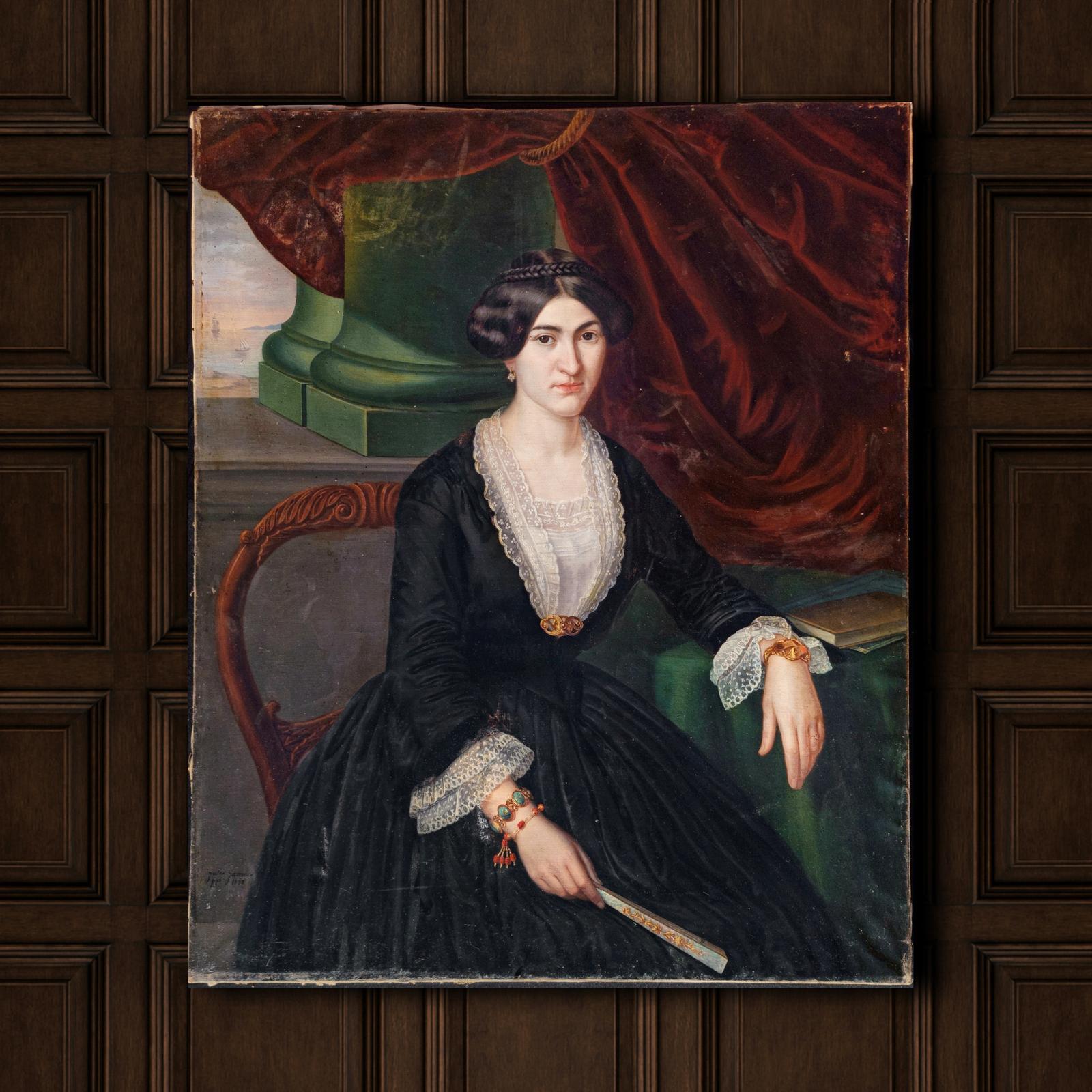 Fine 19th Century Oil Portrait Painting of a Wealthy Lady, French Antique Art
