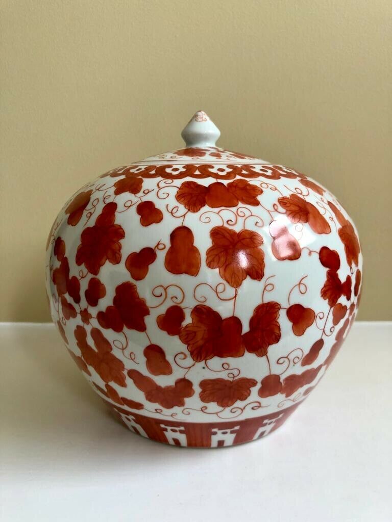 Fine 19th Century Porcelain Chinese Ginger Jar Iron Red Pattern of Tongzhi Period