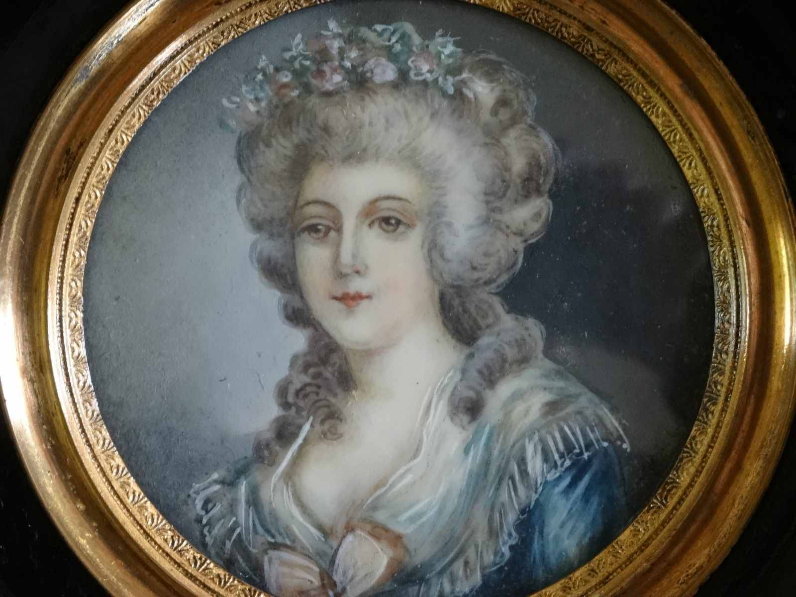 Fine 19thc Miniature Circular Oil Portrait Painting of a Society Beauty