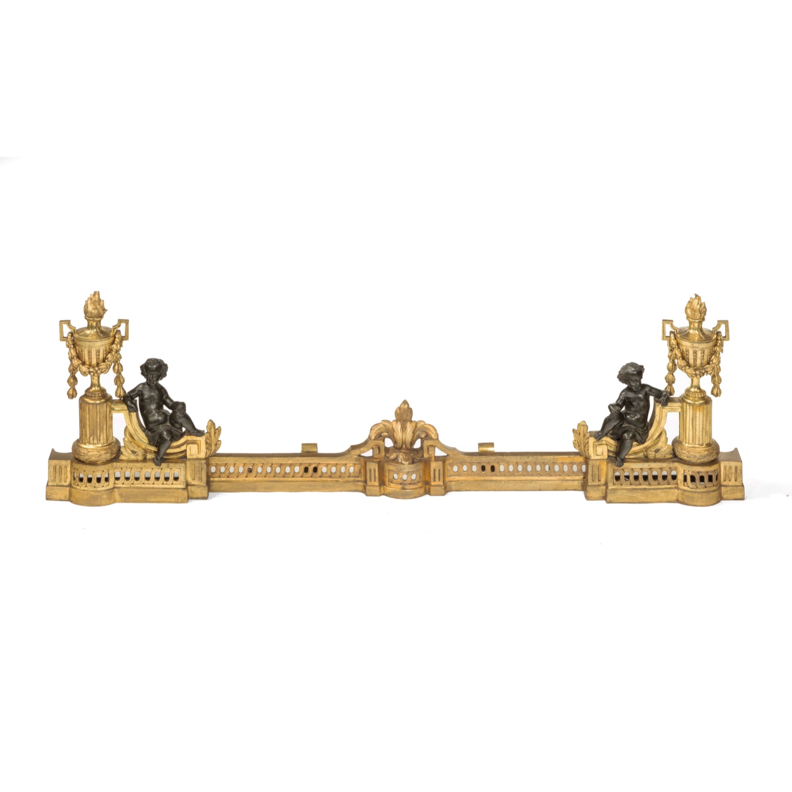 Fine Adjustable Fireplace Fender, Gilt Chenets & Bronze Putti’s 19th Century