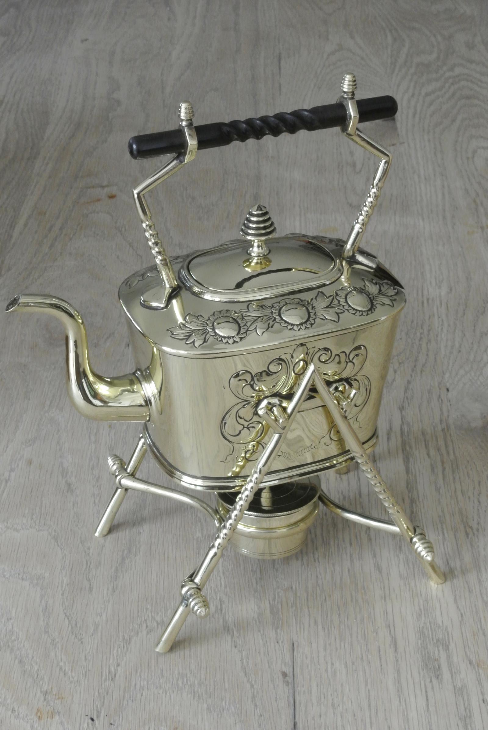 Fine Aesthetic Movement Brass Spirit Kettle Tea Kettle on Stand c.1880
