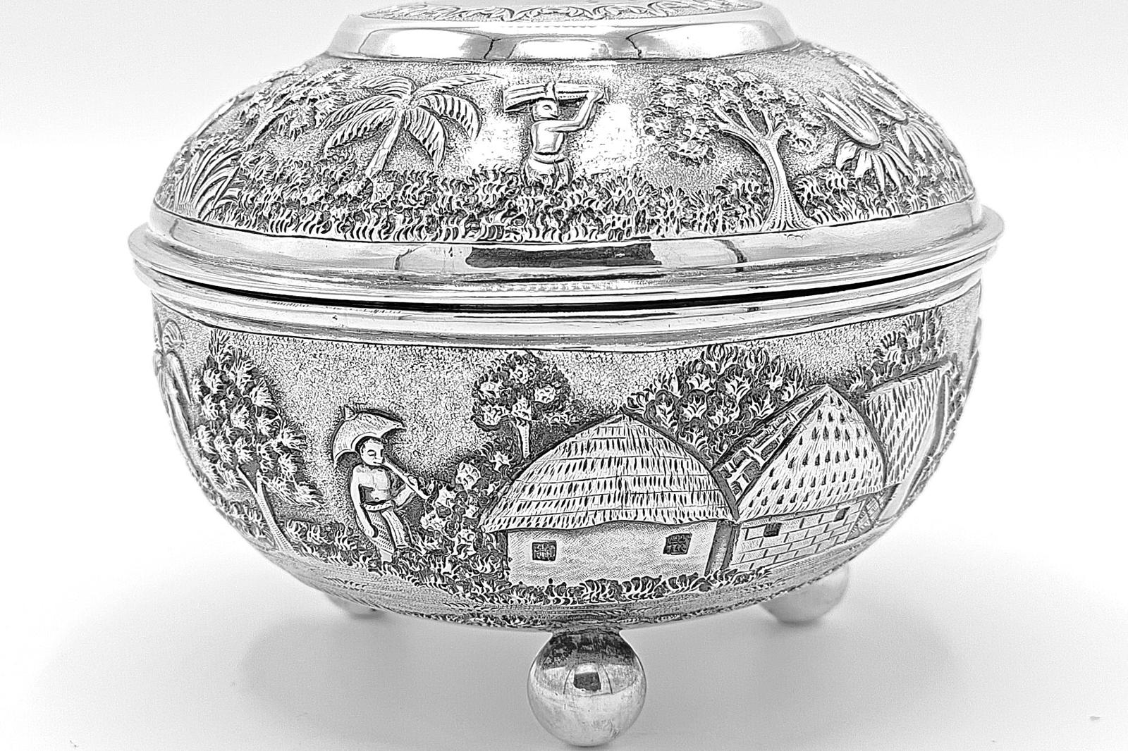 Fine Anglo-Indian Silver Covered Bowl by Grish Chunder Dutt, Calcutta c.1894